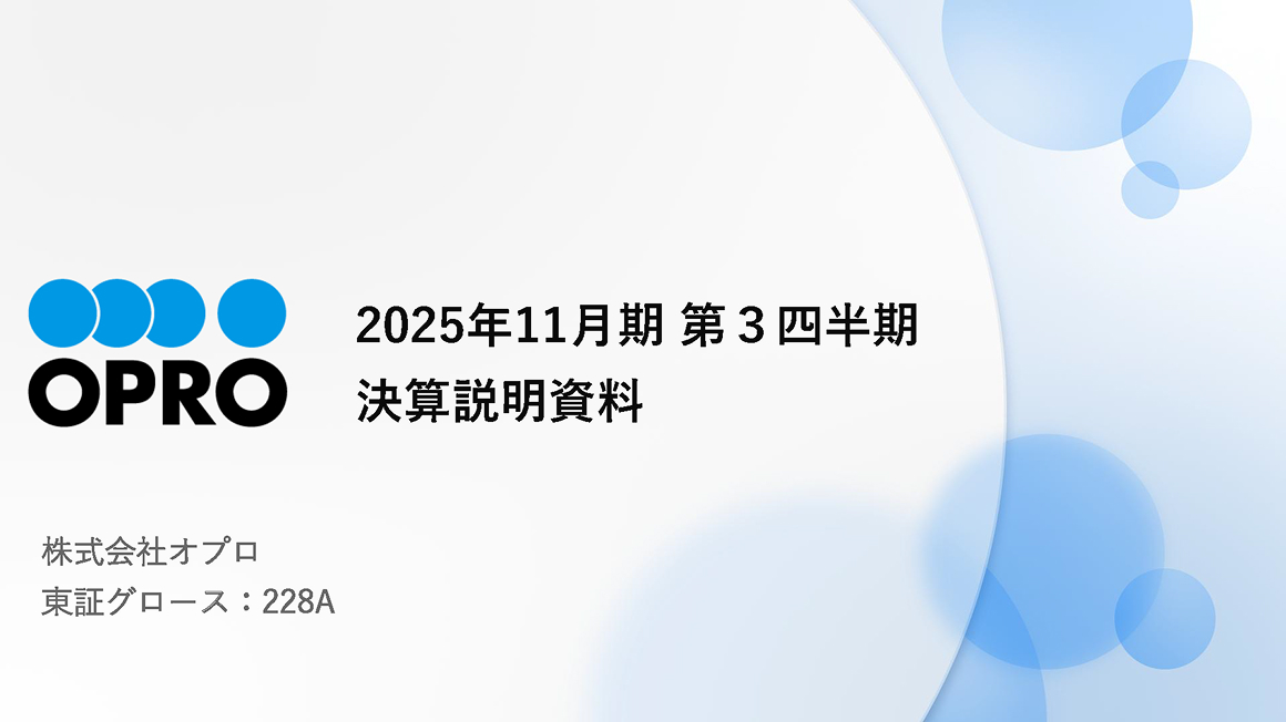 ホーム IR情報 IR情報 株主・投資家の皆様へ 詳細を見る 2025年11月期 第3四半期 決算説明会 ピックアップコンテンツ 今後の予定 IRカレンダー 詳細を見る オプロ早わかりガイド 詳細を見る 株価情報 詳細を見る IRニュース IRニュース一覧を見る IRライブラリ 決算短信 決算説明資料 その他IR資料 有価証券報告書 最新IR資料 最新IR資料一括ダウンロード 経営情報 株主・投資家の皆様へ コーポレート・ガバナンス ディスクロージャーポリシー 財務ハイライト 財務ハイライト 株式について 株式情報 株主総会 株価情報 IRお問い合わせ よくあるご質問 電子公告 免責事項 X(旧Twitter) Instagram note Facebook YouTube